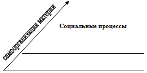 На общественно-социальном уровне происходит новый прорыв в самоорганизации материи. Материальные формы, обладающие способностью к абстрактному мышлению (о чем речь пойдет далее) приобретают способность передавать, осваивать и воспроизводить передовые формы организации не в только виде инстинктов, но и в виде осмысленного поведения. Данное обстоятельство позволило человеческому сообществу многократно повысить ресурсную эффективность своей деятельности.
