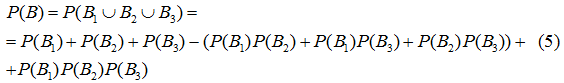 В свою очередь вероятности формирования событий В1, В2, В3 происходят под влиянием развития их составляющих С1i, С2i, С3i. Так как данные события независимы друг от друга, т.е. свершение одного не зависит от свершения другого, то имеет место вероятность независимых событий. Она определяется следующим образом [3]: