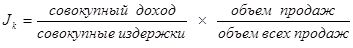 где Jk – индекс конкурентоспособности (адаптированности) всей системы в целом; агрегатный показатель, отражающий качественную взаимосвязь доли издержек и доли занимаемого рынка (соотношение Гульдберга-Вааге).