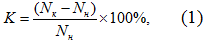 где К – рост количества инноваций, %, Nн, Nк – количество инноваций в компании соответственно на начало и конец анализируемого периода.