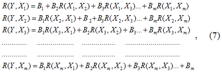 где R(Y,Xi) – парные коэффициенты корреляции между результативным и факторными признаками;
