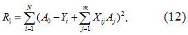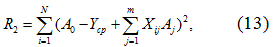 где Аi – (A0, A1, A2,…, Am) – коэффициенты уравнения множественной регрессии;