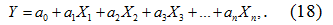 Важнейшим этапом построения и решения регрессионной модели является установление математической функции. Сложность заключается в том, что из множества функций необходимо найти наиболее достоверно выражающую реально существующие связи между анализируемыми признаками. Опираясь на теоретические знания об изучаемых явлениях, учитывая опыт аналогичных исследований других авторов [2,3] было выбрано следующее уравнение многофакторной линейной корреляционной связи: