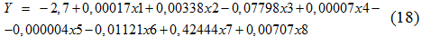 Коэффициенты уравнения множественной линейной регрессии определялись по формулам и методикам, приведенным в [4].