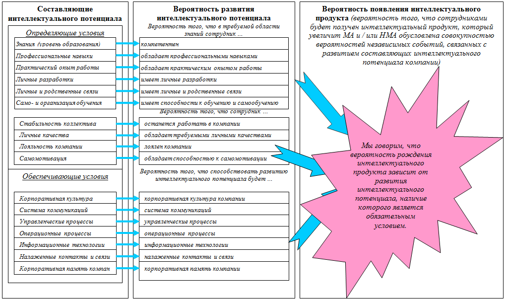 Рис. 2. Вероятностный механизм появления интеллектуального продукта за счет развития интеллектуального потенциала