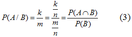 Вероятность событий P(АÇВ) предлагается определять согласно классическому определению вероятности [4]: