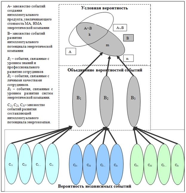 Таким образом, если событие B произошло, то количество всех возможных исходов m, из них благоприятствующих событию А (рождению интеллектуального продукта) будет k исходов [2, 3].