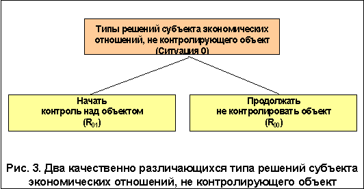 В ситуации, когда объект не контролируется субъектом экономических отношений, последний может принять по отношению к данному объекту решение одного из двух качественно различающихся типов решений (см. рис. 3).
