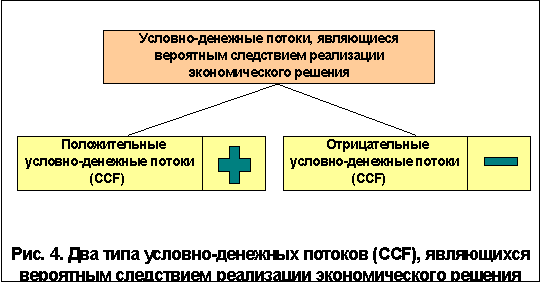 Как правило, экономическое решение порождает положительные и отрицательные условно-денежные потоки (CCF) (см. рис. 4).