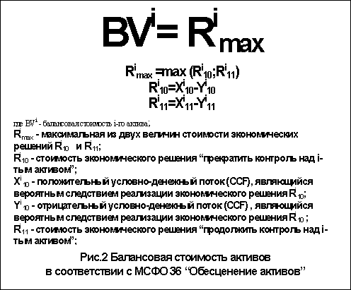Таким образом, согласно МСФО 36 “Обесценение активов”, активы должны отражаться в балансе по большей из двух величин стоимости экономических решений R11 и R10.