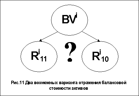 Как было показано, отражение активов по минимальной или по максимальной из двух возможных величин стоимости экономических решений R11 и R10 не обеспечивает во всех случаях надлежащего отражения изменений финансового состояния компании в публичной финансовой отчетности, в результате чего ни один из указанных выше подходов не соответствует цели финансовой отчетности. В связи с этим возникает вопрос: по какой из двух величин стоимости экономических решений Ri11 или Ri10 активы должны быть отражены в бухгалтерском учете (см.рис.11)?
