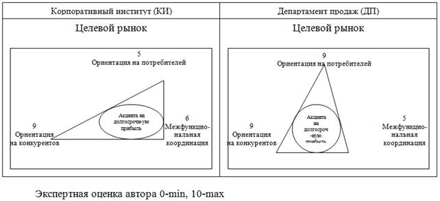 Обе рассматриваемые структуры рыночно ориентированные, об этом свидетельствует то, что в управлении и в измерении деятельности внимание уделяется всем трем аспектам «Модели рыночно ориентированной организации» [1].