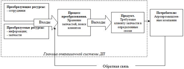 У обоих подразделений компании имеются похожие входы: сотрудники и информация. Далее в процессе преобразования входов КИ получает новую научную или практическую идею, а ДП организует хранение запчастей и поиск клиентов. Потребителями у КИ являются учащиеся, общественность, юридические лица. У ДП потребители – агропромышленные компании. В КИ существенно ослаблена обратная связь между потребителем и входами процесса преобразования. Это связано с тем, что практически отсутствует сбор данных и анализ удовлетворенности потребителей. ДП наоборот, хорошо знает своих потребителей, там хорошо развита обратная связь.