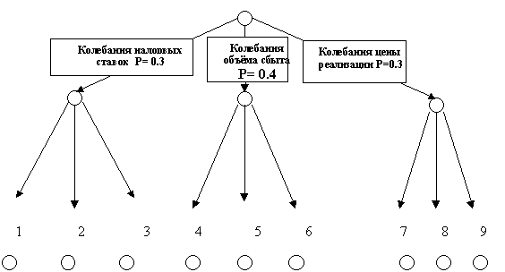Рассмотрим возможные ситуации, обусловленные колебаниями этих факторов. Для этого построим «дерево сценариев».