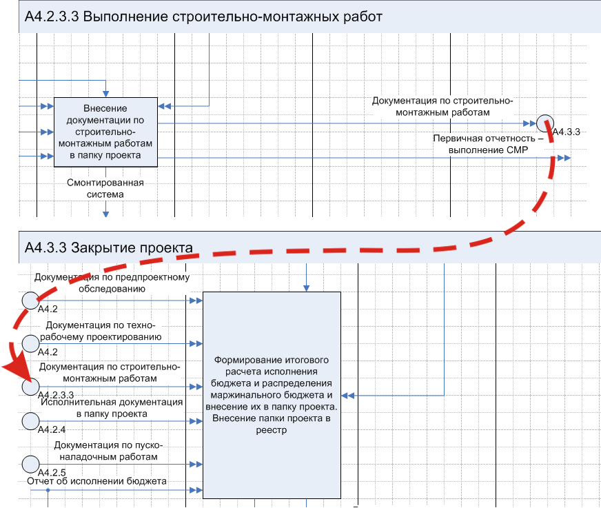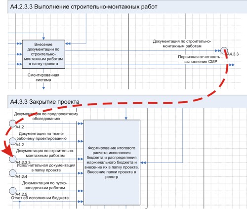 Главная ошибка здесь –попытка вместить в одну диаграмму всю деятельность компании. Нужно вовремя остановиться на промежуточном результате, передать его в другую процедуру и продолжить работу с ним в ее рамках. Это одна из возможностей Business Studio для удобного моделирования (рис.2):