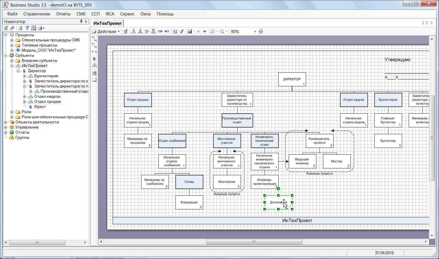 Рис.3. Создание организационной структуры в Business Studio 3.5.