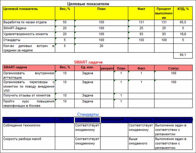 Примером может служить матрица результативности подразделения за период, представленная на рис.1.