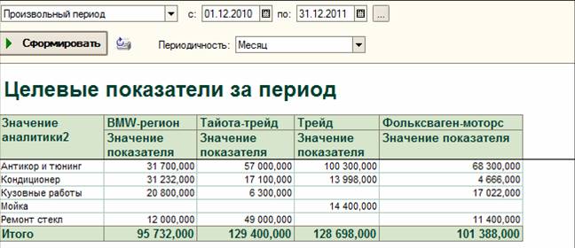 Рис. 2. Оперативная панель бизнес-показателей в разрезе периодов и 2-х видов аналитик
