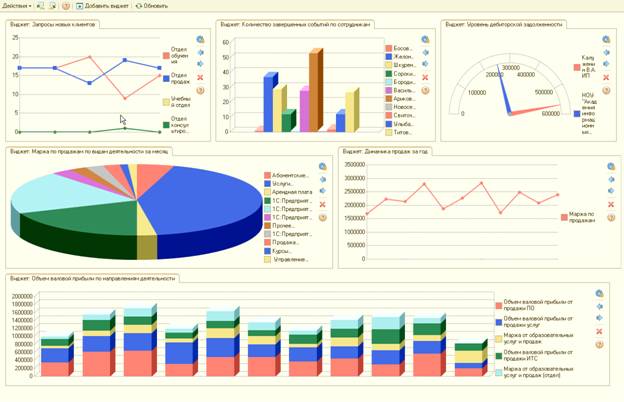 Примером может служить панель бизнес-показателей в логистической компании, в которой отслеживается степень плановой заполняемости транспорта или панель показателей колл-центра, которая показывает количество обработанных, упущенных, отклоненных запросов.
