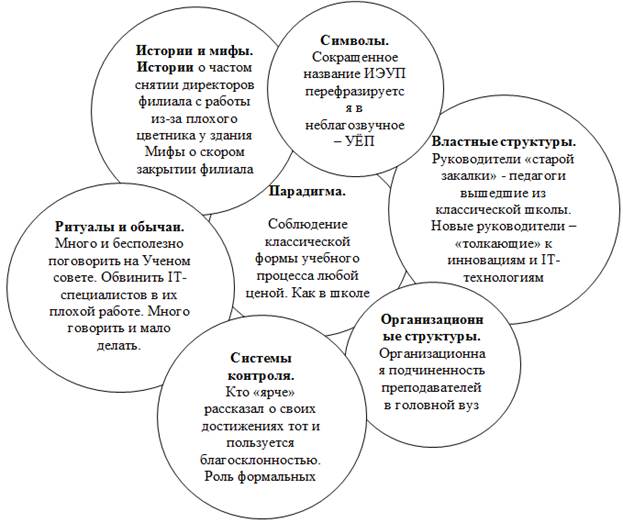 Организационные структуры. Организационная подчиненность преподавателей в головной вуз затрудняет управляемость и развитий новой культуры. Препятствует реализации стратегии.