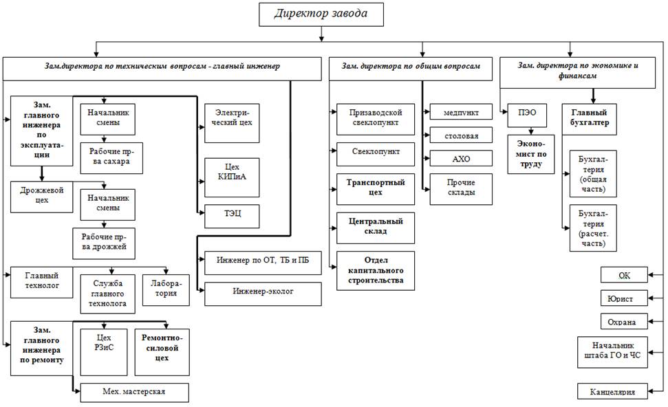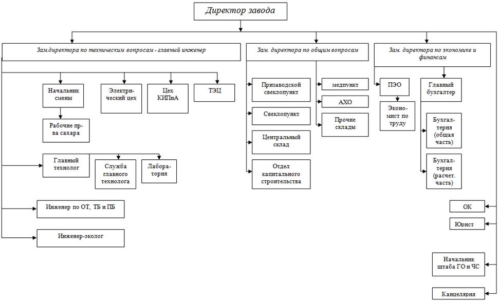 Рис. 1. Типовая организационная структура условного сахарного завода ОАО «Сахарный комбинат».