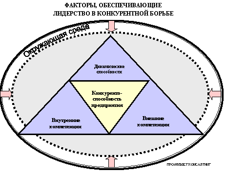 Многочисленные исследования последних лет в области стратегического менеджмента показывают, что успех корпораций в конкурентной борьбе зависит от трех базовых групп факторов: