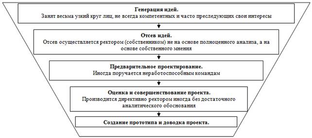 7. Отсев идей осуществляется директивно ректором, без соответствующей аналитической проработки вопроса. Это приводит к отсеву ряда перспективных направлений.