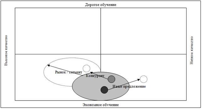Оценка и совершенствование продукта проводится директивно ректором. Иногда это приводит к дальнейшей однобокости проработки вопроса. Все это приводит к нежелательному собственному дрейфу на рынке (рис.1.5) [4].