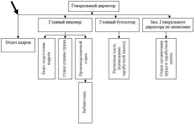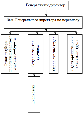 Итак, промышленное предприятие ОАО «Пром-Тех» представляло собой вполне обычную для настоящего времени промышленную компанию, созданную на основе обычного советского завода и унаследовавшую все связанные с этим проблемы. Численность предприятия составляла порядка 2000 человек, организационная структура в части вопросов связанных с управлением персоналом выглядела следующим образом (см. рис.1).
