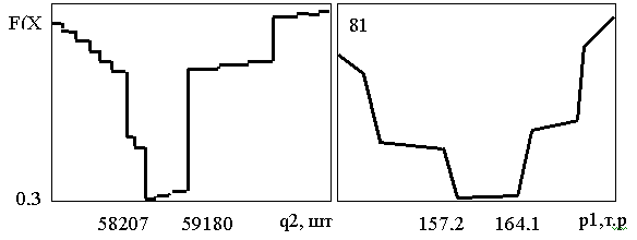 разрецы ЦФ по целочисленным и непрерывным переменным.