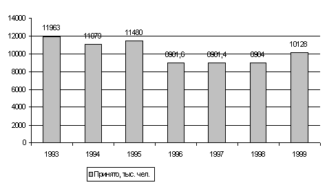 Рис. 2. Динамика приема работников в период 1993-99 гг.