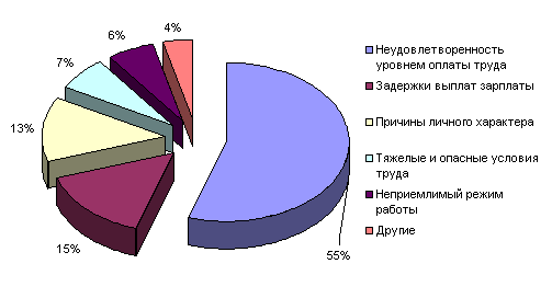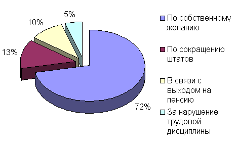 Наиболее безболезненным для работодателя является вариант увольнения, инициатором которого является сам работник – в этом случае минимальна величина как моральных, так и материальных издержек. Поэтому в настоящее время при намерении уволить того или иного сотрудника любой работодатель старается задействовать именно мотив собственного желания работника. Увольнение по собственному желанию в 1999 году по России в целом составило 71 % от всего числа выбывших, что отражает возрастающую динамику такого подхода:
