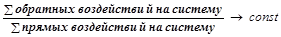 При этом воздействие внешней среды на систему будет являться прямым, а внутреннее (реактивное) воздействие системы на внешнюю среду – обратным. Значение const отражает равновесное состояние системы в существующих граничных рамках внешней среды. Способ основан на сопоставлении качественных и количественных показателей систем при помощи агрегатного индекса, например: