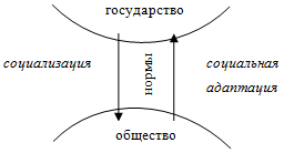 Однако, наиболее всеобъемлющим видом социализации является право. Понятие «право» определяется как «система общеобязательных социальных норм, а также отношений, закрепляемых государством с помощью этих норм и охраняемых ими»[5]. Обеспечивая регламентацию общественной жизни и контролируя соблюдение членами общества социальных норм поведения, право является «необходимым инструментом организации, поддержания и сохранения общества»[6].
