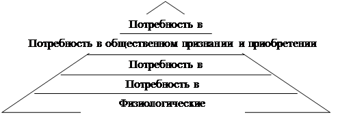 Следует отметить и другое. Не случайно потребности высшего порядка проявляются после удовлетворения потребностей низшего порядка. Эта закономерность обусловлена эволюционным характером процесса самоорганизации материи. Известный американский психолог и социолог Абрахам Харольд Маслоу дает следующую схему, названную им “пирамидой потребностей”: