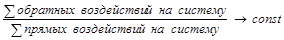Внешнее воздействие на системы будет всегда являться прямым, а внутреннее (реактивное) – обратным. Значение const отражает равновесное состояние системы в существующих граничных рамках (например, оптимальное производство в граничных рамках совокупного спроса).