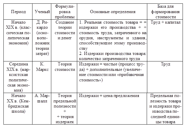 В начале XIX в. под затратами понимались денежные и ресурсные расходы, которые рассматривались экономистами-теоретиками как потери и именовались издержками (табл. 1.1). В настоящее время термины «расходы» и «затраты» часто употребляются как синонимы. Но это неправильно!