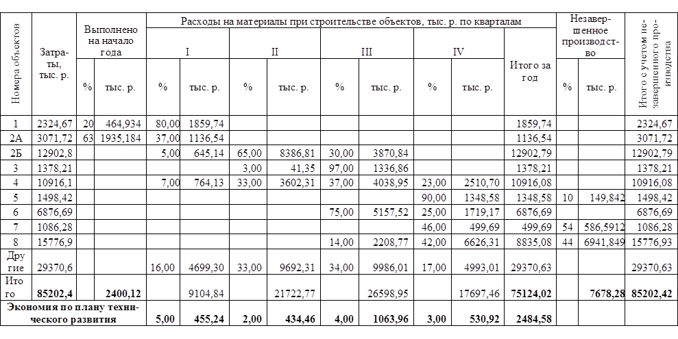 Расчеты затрат на материалы и их экономии по плану технического развития
