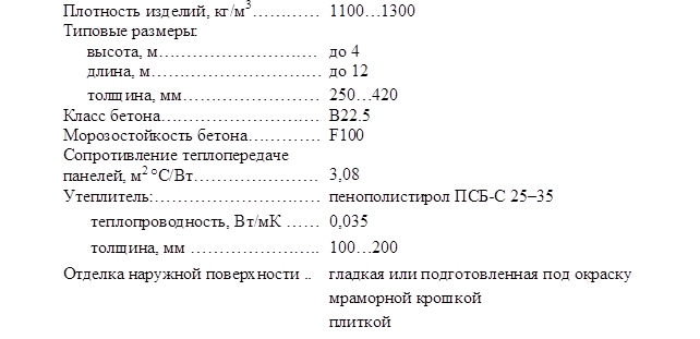 Основным направлением деятельности ОАО «Паркон» является производство фасадных трехслойных стеновых панелей со следующими технико-экономическими характеристиками: