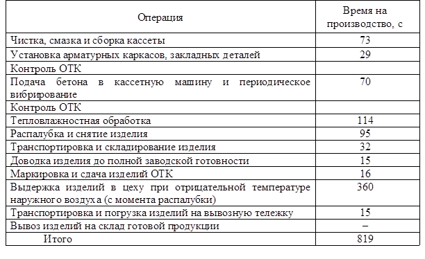 Методика расчета норм времени на изготовление стеновых панелей основана на определении средних затрат времени на выполнение операций технологического цикла (табл. 2.1).