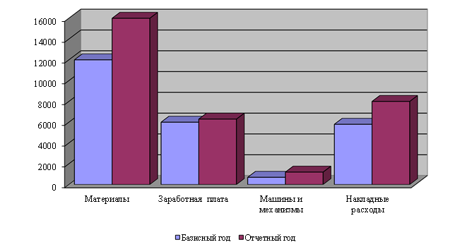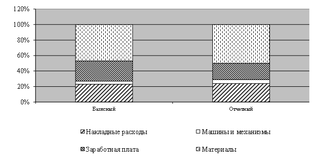 Рис. 3.1. Изменение структуры себестоимости СМР по статьям затрат в базисном и отчетном годах.