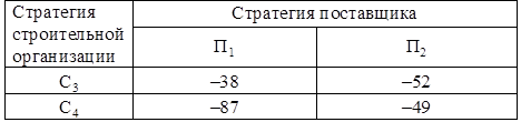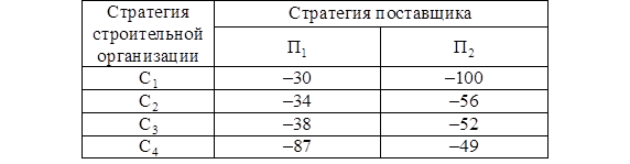 Таким образом, максиминная стратегия строительной организации нейтрализует минимаксную стратегию поставщика. Очевидно, такой подход может быть продиктован только крайним пессимизмом в оценке обстановки.