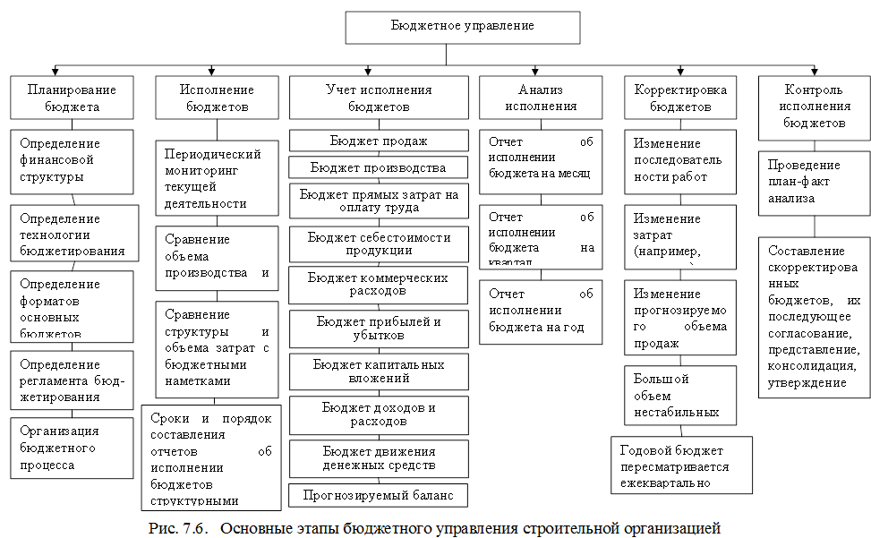 При разработке и внедрении бюджетного регламента прежде всего необходимо определить бюджетный период, или горизонт финансового планирования строительной организации. Составление бюджетов осуществляется в соответствии с бюджетным регламентом и по бюджетным форматам, утвержденным в организации. Контроль за исполнением бюджетов и выработка рекомендаций по устранению негативных тенденций являются важнейшими задачами бюджетного процесса.