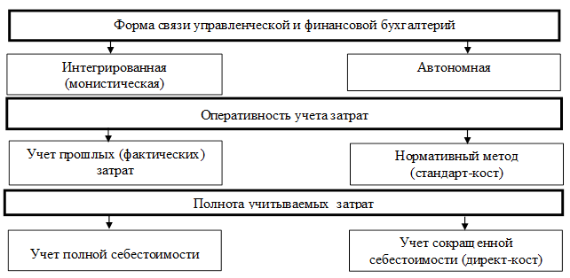 Различные сочетания экономических, юридических, организационных и технико-технологических факторов определяют разнообразие форм организации управленческого учета.