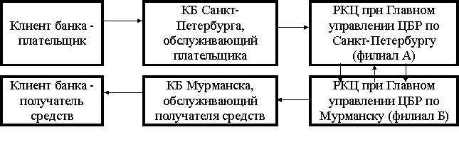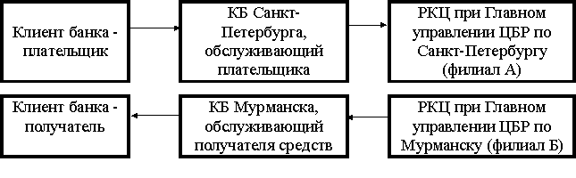 Рис. 9.2. Схема документооборота при прямых корреспондентских отношениях между коммерческими банками России