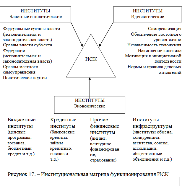Система институтов, образующих институциональную матрицу, формирующую среду для функционирования и развития ИСК представлена на рисунке 17.