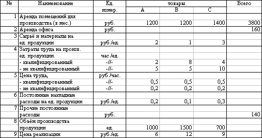 Производственное предприятие выпускает 3 вида продукции: А, В и С.