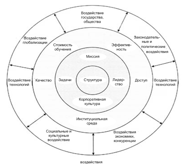 Рис. 12. Воздействие внешних и внутренних факторов на структуру высшего учебного заведения