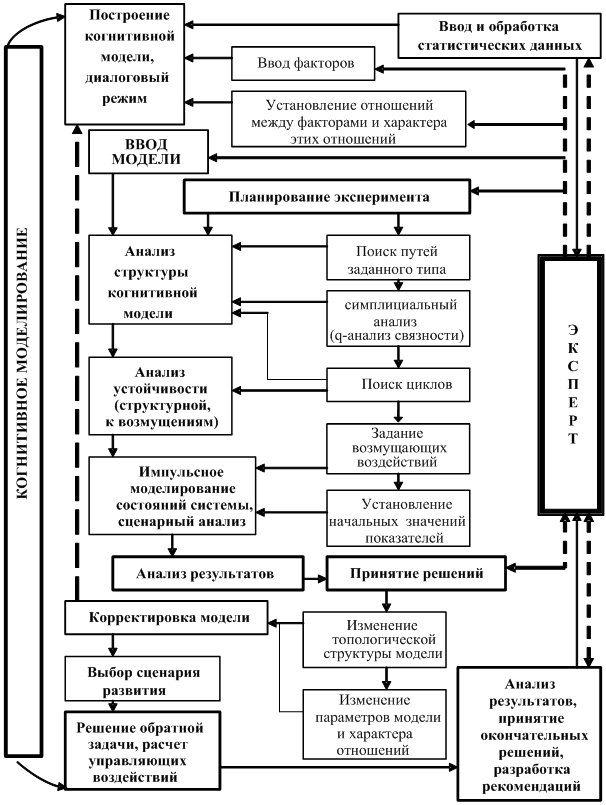 Когнитивный подход к анализу, прогнозированию, принятию решений, управлению сложными системами начал развиваться в нашей стране не так давно – примерно с 90-х годов прошлого столетия. Главным образом трудами ученых ИПУ РАН. Но история когнитивного анализа началась с 60-х годов трудами Эткина, Робертса, Касти. В настоящее время уже накопился достаточно большой опыт исследований в данной области, который позволяет с уверенностью применять методологию когнитивного моделирования к решению слабоструктурированных проблем различных сложных систем. Необходимо пояснить, что под «сложными» («большими») системами понимаютя системы с большим количеством элементов, большим количеством разнохарактерных связей между ними, сложным поведением, в условиях неопределенности (внутренней и внешней) и т.п.