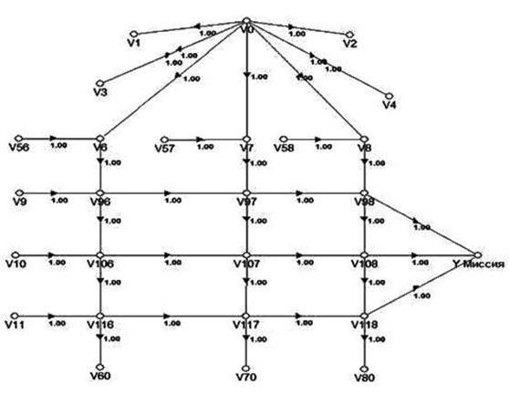 Поскольку матричная структура представляет собой полный граф с висячими внешними вершинами, для упрощения анализа и интерпретации его результатов можно исследовать граф размерности меньшей, чем на рис. 26.